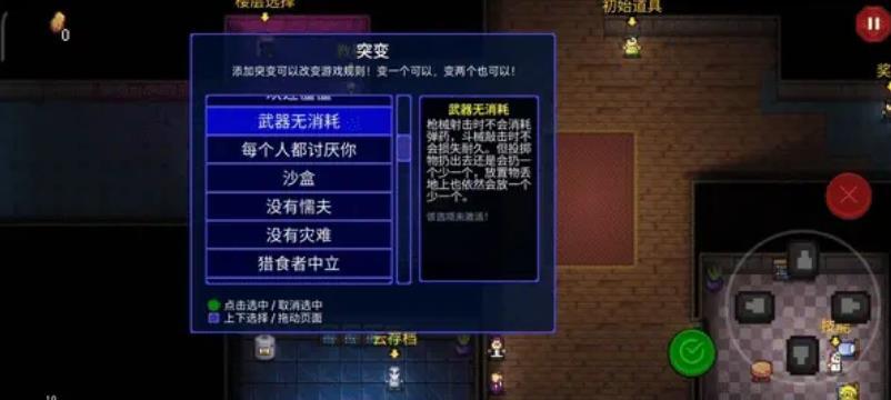 添加突变能够改写游戏规则。你既可以选择让游戏进程提速至1.3倍,也能选择为自己的武器配备无限弹药!