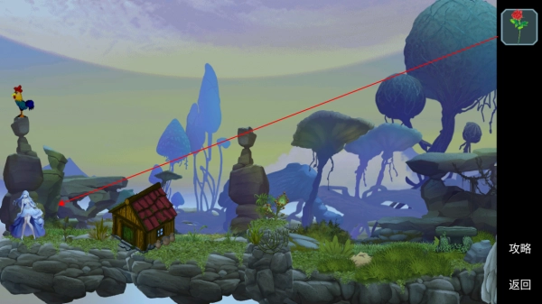 1. 在第一关中,点击公鸡能够切换时间。小屋旁边放置着太阳瓶和月亮瓶,需在不同时段获取,它们分别用于收集朝露水与晚露水。