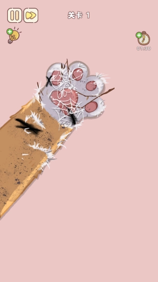 2.在第一个关卡中玩家需要为小狗清理脚掌。