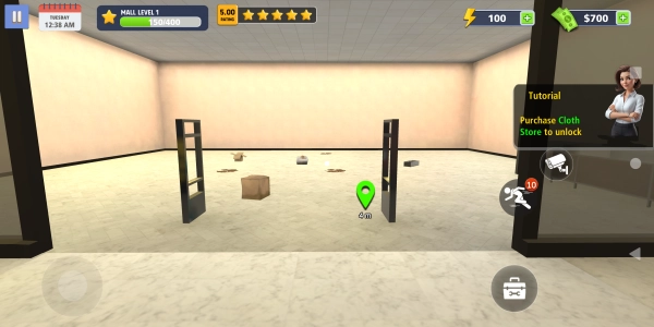 抵达目的地后,解锁我们的首家商铺。此刻,你需要清理店铺内的垃圾,精心布置店面,以此吸引顾客前来消费。让我们一步步将商场打造得愈发繁荣!