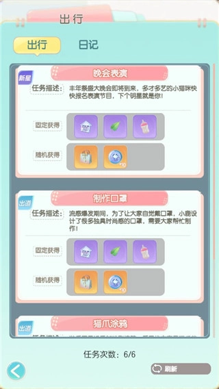 出行方式分为两种,一种是独自出行,另一种是结伴出行。当室内有小伙伴时,就可以选择结伴出行。要是等不及的话,还能点击缩短出行时间,观看一段广告(其实是超治愈的猫片!)就能缩短时间,既能吸猫又能节省时间,一举两得!