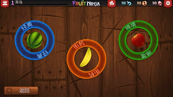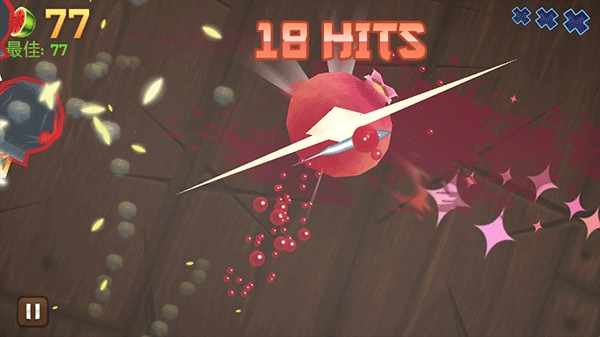 2、禅模式:水果会持续不断地出现,时长设定为一分半钟。在这一分半钟里,玩家凭借连击切割水果所获得的分数越高,就能成为最终的胜利者。该模式下,游戏不会因为水果掉落而判定失败。