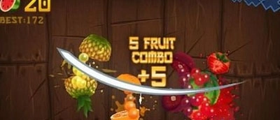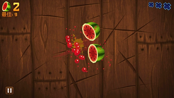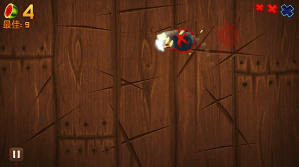 4、这款游戏的玩法十分简单,玩家只需用手指滑动屏幕来切割水果,就能获取高分;不过在切割的过程里,也得注意避开炸弹。