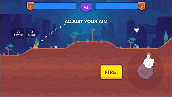2、点击右下角的按键进行瞄准,当你目测可以轰炸到对方时,点击“FIRE”按钮即可发射。