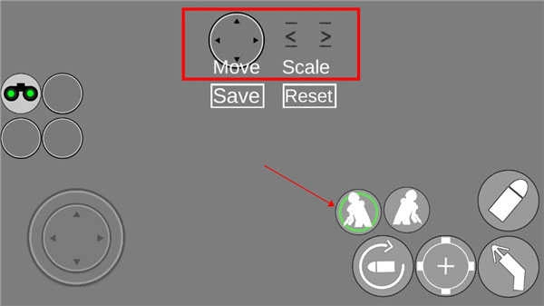 3、进入后,点击一个操作图标,显示绿圈则代表被选中,之后选择上方的按钮即可更改,轮盘控制位置,箭头控制图标大小。