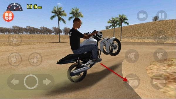 1、按住箭头所指的按钮就能加速前进,方向可通过左侧进行操控。