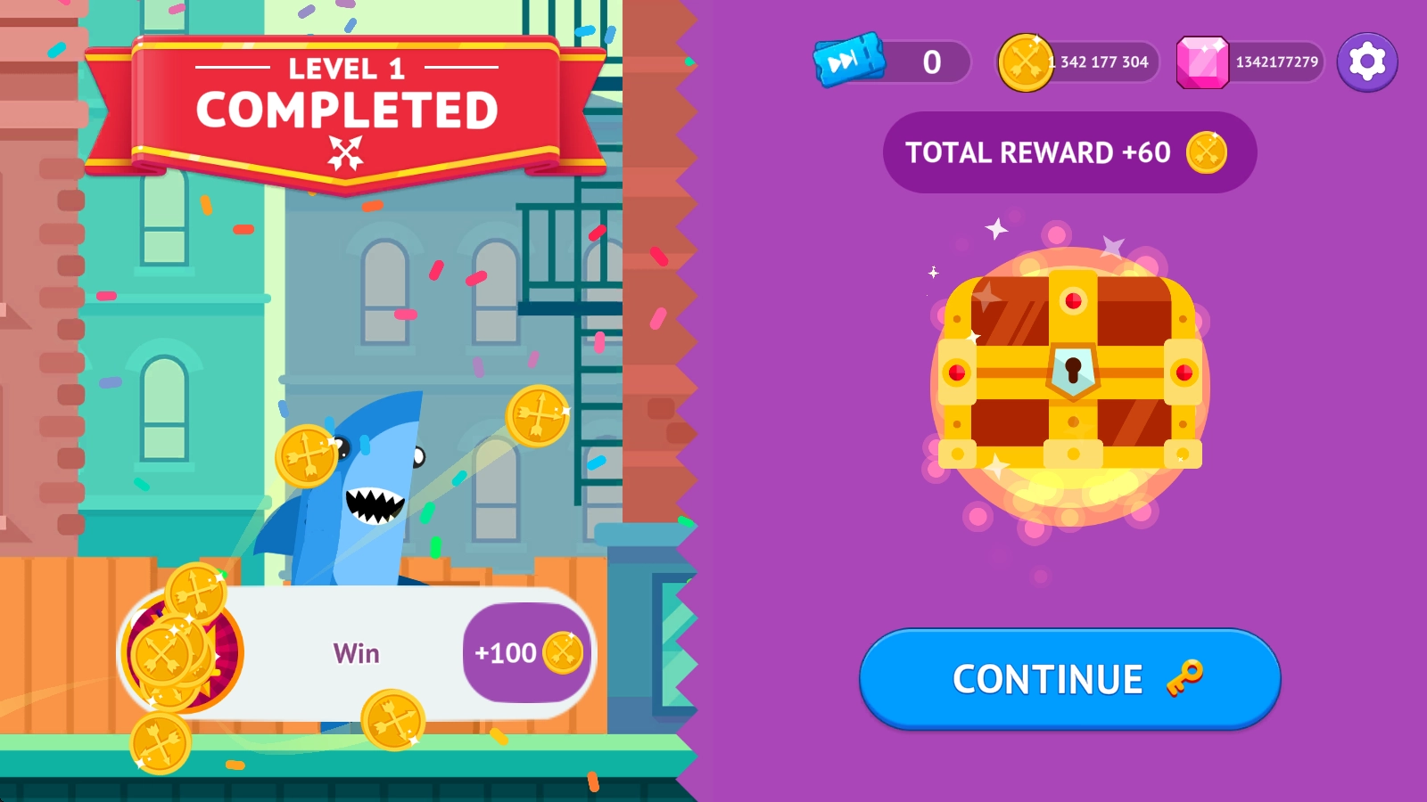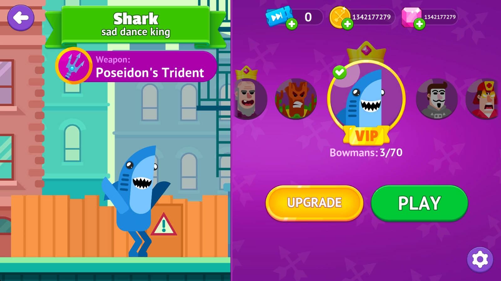 可以继续挑战下一关,你能够挑选不同的角色来玩游戏,而且不同角色配备的武器是不一样的哦。