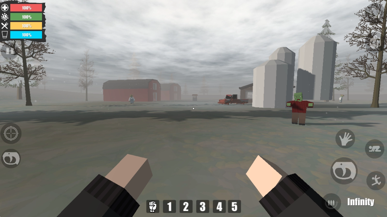 在收集资源的过程中,我们会遭遇僵尸的攻击,此时可以借助武器展开反击。