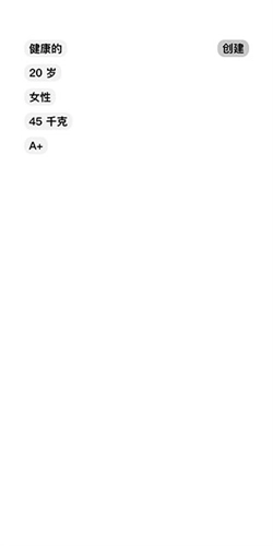 1、进入游戏后,首先要创建人体模型,左上角显示该模型的基本构成信息,这些信息仅支持点击切换,无法进行具体自定义,完成后点击右上角的创建按钮即可。