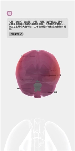 7、再次点击该器官,会展示其详细说明内容,并在模型里标注出器官的构成部分;点击下方的“了解更多”按钮,也会跳转到浏览器页面。