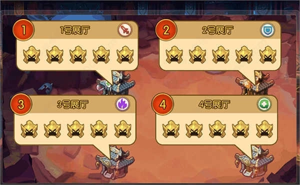 每个展厅内都有五幅武将肖像,这些肖像按品质划分成不同等级。右侧的高阶肖像带来的加成效果十分明显,不过需要消耗较多元宝;而在日常的养成过程中,选择铜钱档位会更加实在。