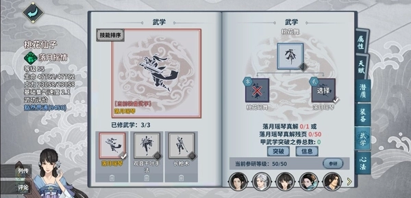 4、桃花的甲潜质落月摇情,我个人感觉比绝潜质更好用,不过这两个潜质都只能通过祈福抽取,要是没抽到也不用纠结,等25级解锁桃花坞的凤凰魔琴后,会获得乙潜质清风月影,这个也能凑合用。需要留意的是,解锁凤凰魔琴的支线有两个选择:选“激流勇进”会拿到加群体暴击的天火奔雷潜质;选“退隐山林”则能得到加群体护盾的清风月影潜质。这里一定要选“退隐山林”——桃花的核心优势本就是加盾,清风月影能让她的实用性更强;而天火奔雷加的暴击实在太鸡肋了,选这个潜质基本派不上什么用场。