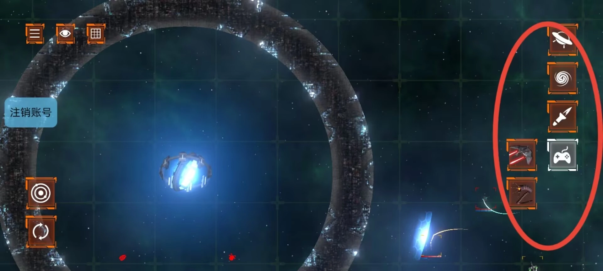 2、右侧功能栏设有战机与敌机的生成图标,选定图标后点击场景中的任意位置,就能完成对应元素的放置操作。