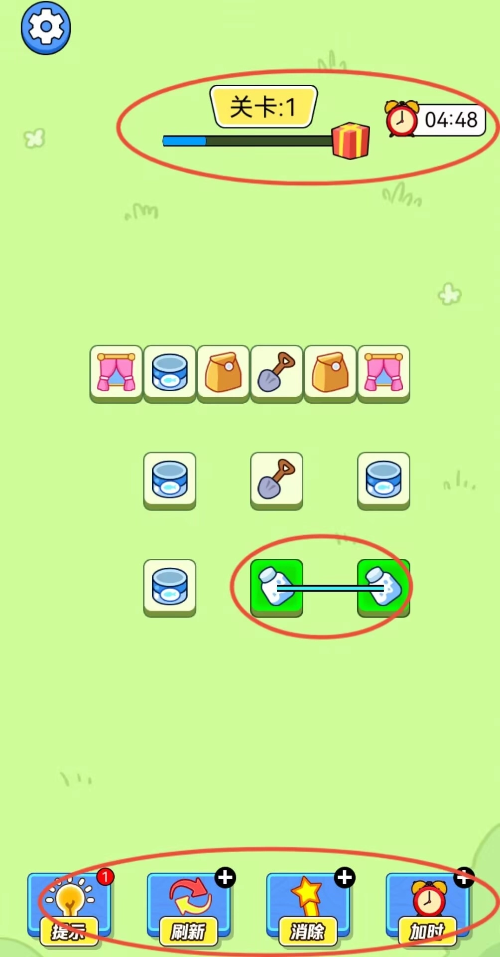 2、策略性玩法十分考验玩家的观察能力,需要规划出最优的消除路径,提前预判后续图案的排列情况,并且合理运用道具来辅助消除,从而在有限的时间内完成所有的配对挑战。