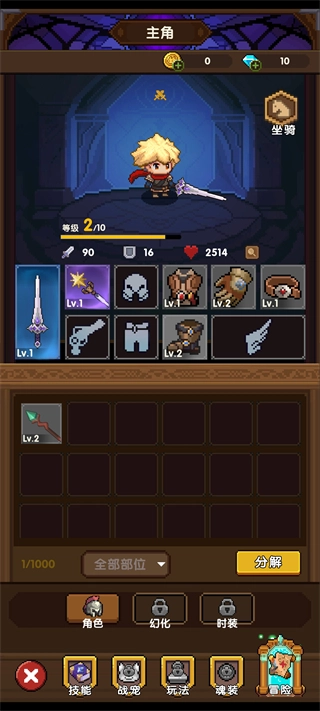 前期可以优先穿戴掉落的装备,特别是武器和防具,这样能直接提升攻击、防御和生命值。背包里的低等级或没用的装备,可通过“分解”功能回收资源,为后续强化装备做准备。
