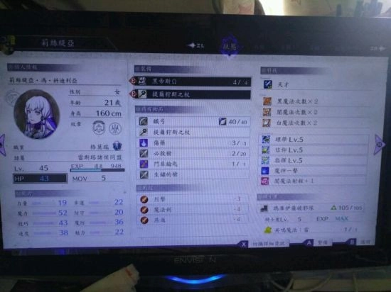 标准的水桶身材,原本打算物法双修,到了后期力量属性突然爆发,便直接放弃了法系路线,无奈速度也跟不上。加点时就只盯着魔技数值看了,拿着卡度凯乌斯之仗搞偷袭倒是挺好用,可惜魔法列表里没什么亮眼的法术。