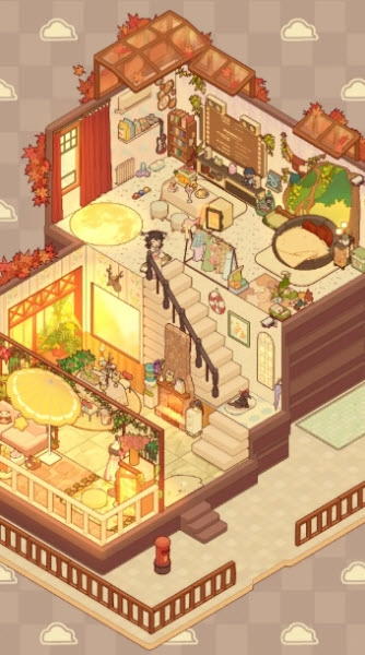 游戏的配乐轻柔治愈,整体节奏轻松惬意,很适合缓解现实生活中的压力。玩家可以自由规划房屋布局,从温馨小窝到豪华别墅都能打造,丰富的家具和装饰风格充分满足了人们对理想居住空间的想象。除了房屋装修,还能体验种花、养猫、制作咖啡、料理食材甚至钓鱼等多种活动,尽情享受多样化的虚拟生活乐趣。