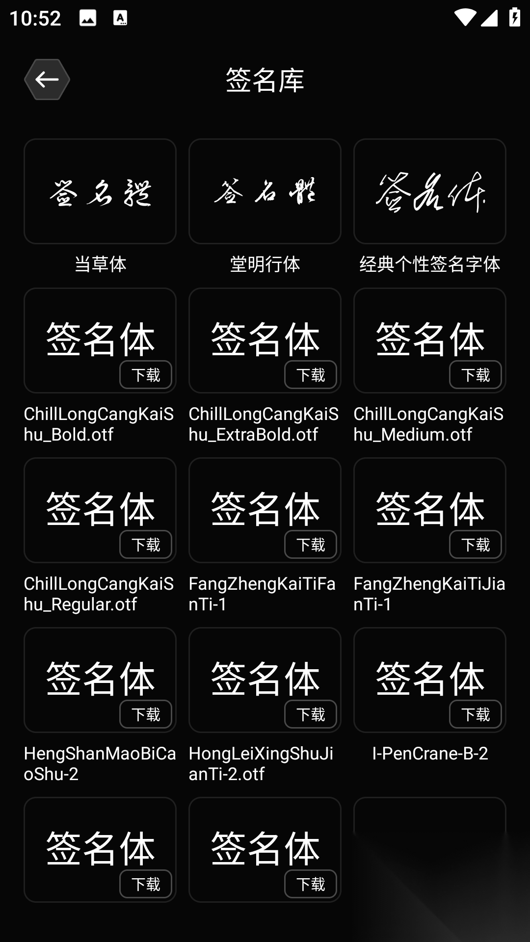 2、打开【签名库】,从众多模板中挑选心仪字体。