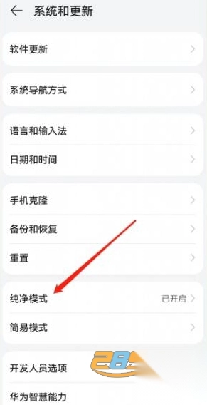 1、打开华为手机的设置中心,可在其中搜索纯净模式,也能在系统选项或更新选项里查找。