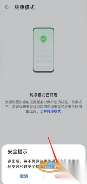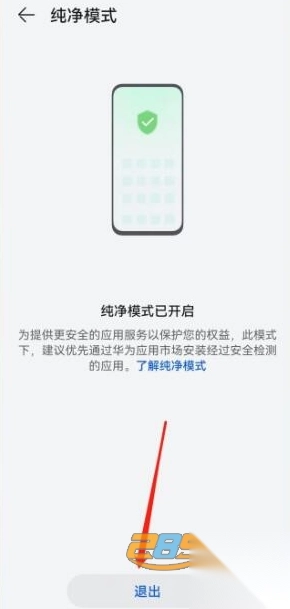3、在弹出的窗口中点击“仍然退出”,完成开机密码验证后,即可关闭纯净模式,关闭之后即可安装华为应用市场以外的app了。