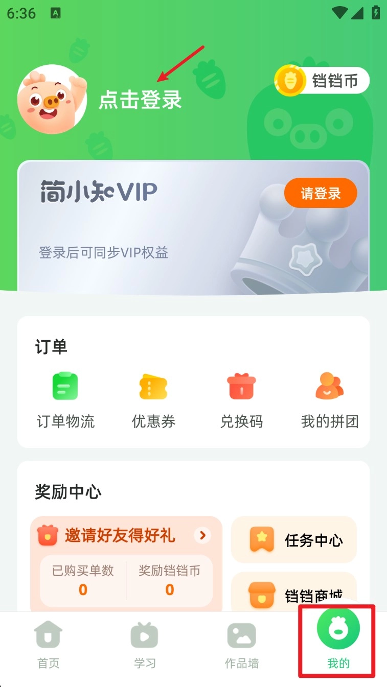 1. 打开 App 后点击底部导航栏的“我的”,进入个人中心页面并完成登录操作。