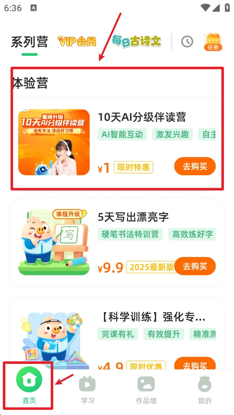 2. 登录成功后返回首页,可在“系列营”中挑选适合孩子的体验营课程进行报名。