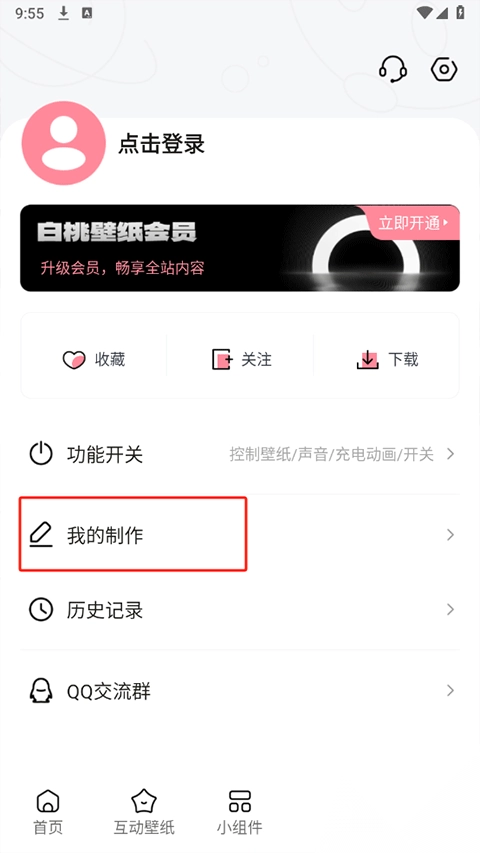 1、打开app首页,点击右上角的“+”号,然后从选项中挑选你想要制作的壁纸类型,像静态壁纸就是其中一种。