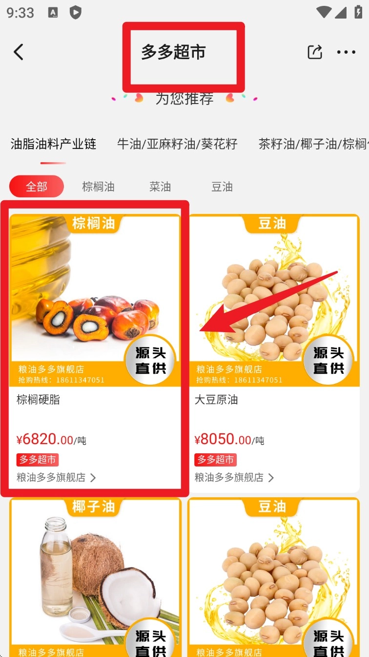 2. 在“多多超市”中浏览商品,点击目标商品查看详情和价格信息,支持筛选类别。