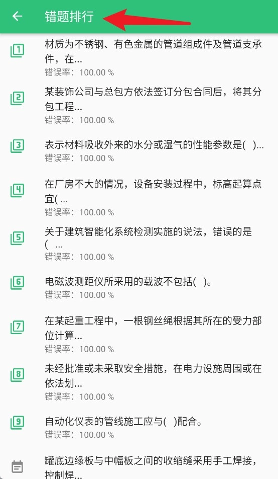 2.“错题排行”功能可查看高频错误题目,帮助重点查漏补缺,提高答题准确率。