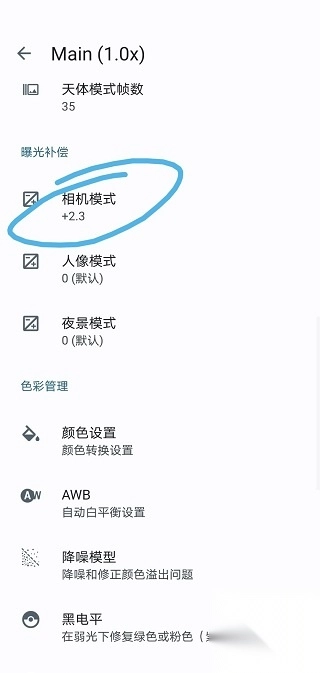 找到相机模式,调整至+1.7~+2.7都行,按你个人喜好的风格来