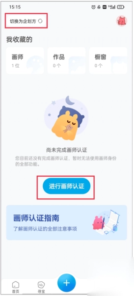 1、首选需要切换米画师app中的角色为画师,然后点击下方的“进行画师认证”。