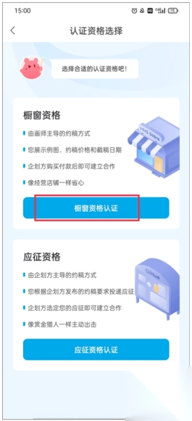 3、认证资格存在两种可选方式,其一为橱窗资格认证,其二为应征资格认证,现以橱窗资格认证为例。