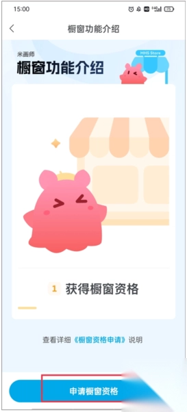 4、在这里你可以查看橱窗的功能有哪些,接下来点击“申请橱窗资格”。