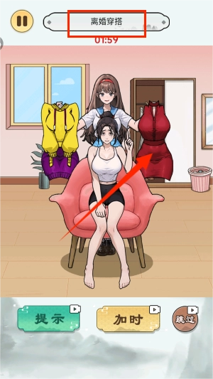 2、系统会显示"离婚穿搭"主题挑战,需为左右两侧的造型挑选合适的服饰组合。