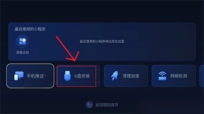 4、进入后可以看到插入到电视上的U盘信息,找到需要下载的应用安装包安装即可