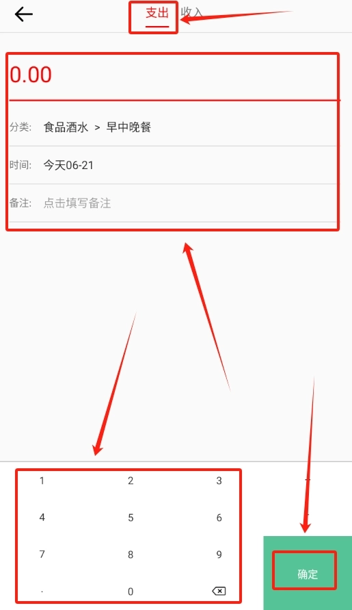 2、要是记支出,就从众多支出类型里挑一个,再输入支出的具体金额,确认无误后点击保存。