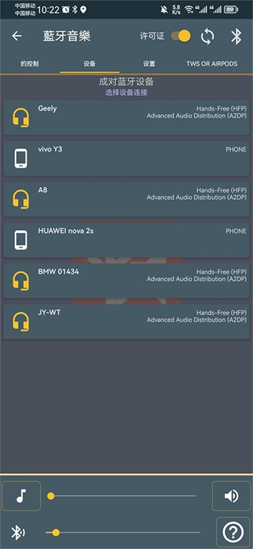 4、蓝牙连接,通过蓝牙连接多个设备,如音响、头戴式耳机等等,可以随时体验心仪的音乐。