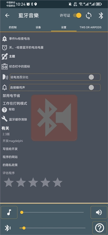 3、在设置界面,你还能进行检查蓝牙电池、设置主题、清除缓存等操作。