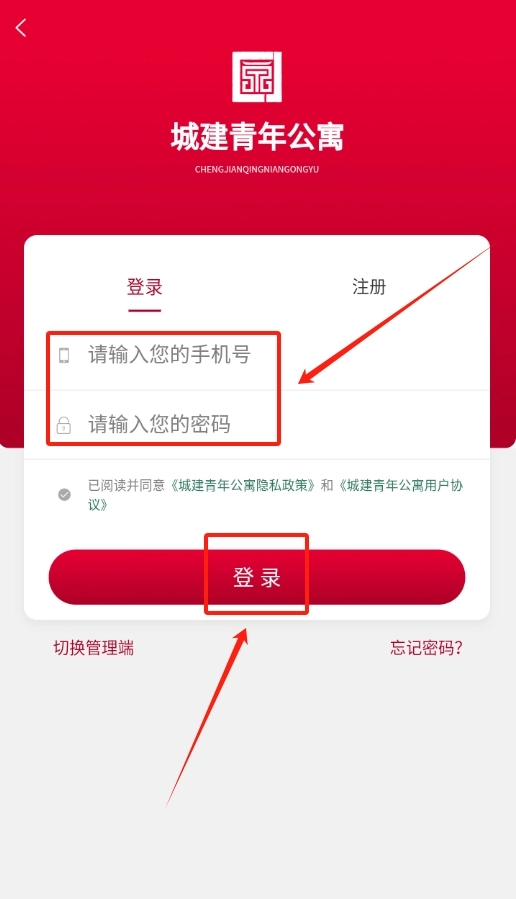 1、下载安装客户端到手机:在应用商店搜索下载城建青年公寓,安装完成后打开进入首页。