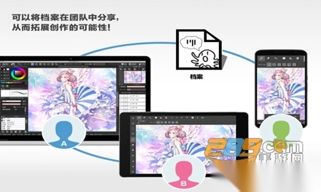 它是最适合绘制插画、漫画的绘画软件,拥有丰富的笔刷,素材,漫画用字体等等可以让绘制插画、漫画更加充满乐趣的功能。在漫画、插画投稿网站「MediBang!」注册免费会员后,就可以利用云储存功能将作品资料共享并和其他的创作者们共同创作插画、漫画。