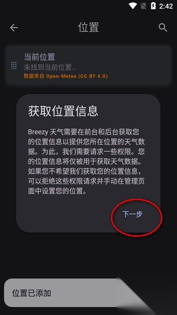 3、进入软件后先要获取位置信息,按提示操作。