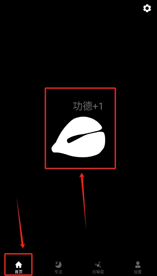1、打开木鱼净心软件,在首页轻点一下木鱼图标,就能给自己加上一份 “功德”。