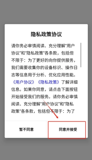 1. 初次启动时需阅读用户协议,勾选同意相关条款后,便可进入应用的主界面。