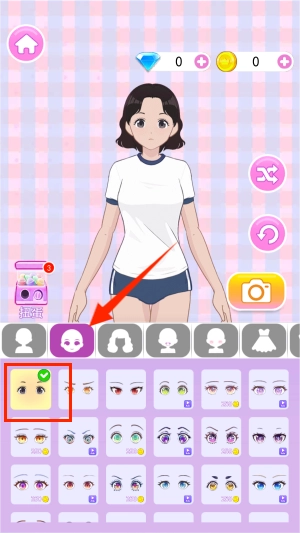 3、切换至面部特征编辑区,通过左右滑动浏览多种眼型模板,打造独一无二的个性娃娃。