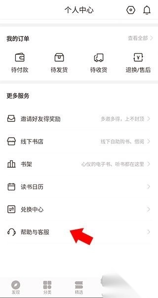 2、点击“帮助与客服”