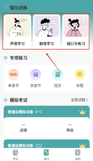 2. 强化训练模块旨在助力考生在临考前实现集中突破,着重提升普通话发音的清晰度与准确性,从而为考试进行全方位、充分的准备。