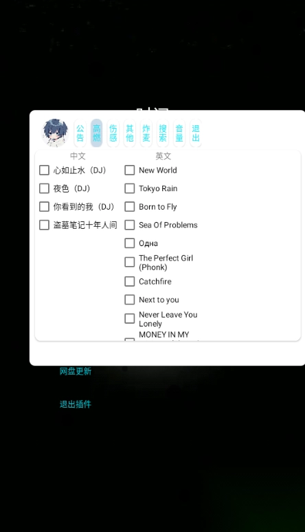 4、这里也可以查看公告,搜索音乐,调整音量等等。