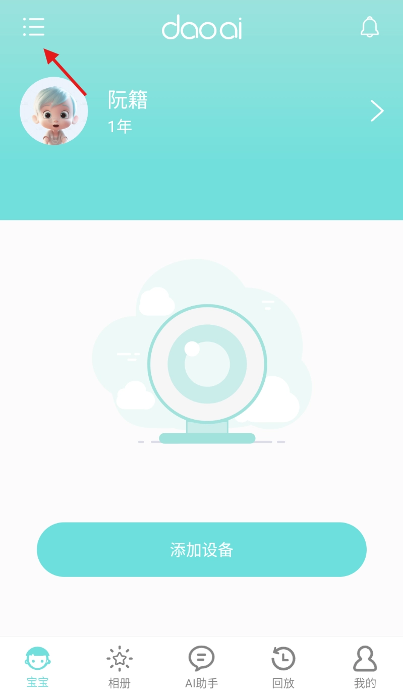 1. 开启道爱家庭软件,进入宝宝管理页面,随后点击左上角的扩展符号。