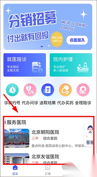 1、打开登录优享陪诊app,在首页下方查找需要就诊的医院;