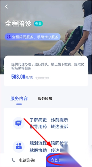 3、选择陪诊服务完成后,在详情页面内点击【立即预约】;